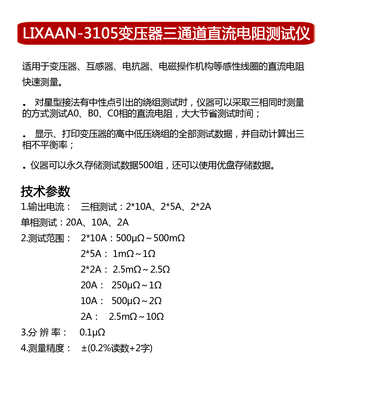 LIXAAN-3105 變壓器三通道直流電阻測試儀